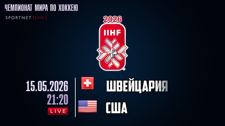 15 мая 2026 года, мы предлагаем посмотреть онлайн трансляцию хоккейного матча между сборной Швейцарии и сборной США, проходящего в рамках Чемпионата мира по хоккею.
