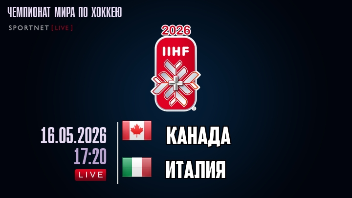 16 мая 2026 года, мы предлагаем посмотреть онлайн трансляцию хоккейного матча между сборной Канады и сборной Италии, проходящего в рамках Чемпионата мира по хоккею.