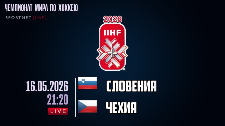 16 мая 2026 года, мы предлагаем посмотреть онлайн трансляцию хоккейного матча между сборной Словении и сборной Чехии, проходящего в рамках Чемпионата мира по хоккею.