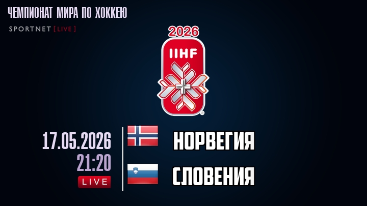 17 мая 2026 года, мы предлагаем посмотреть онлайн трансляцию хоккейного матча между сборной Норвегии и сборной Словении, проходящего в рамках Чемпионата мира по хоккею.