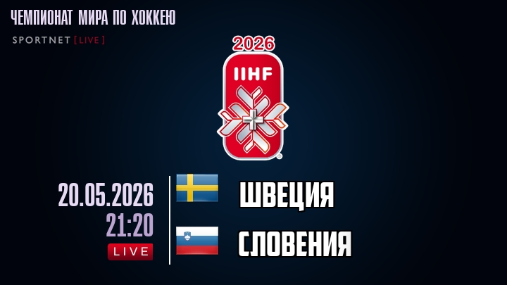 20 мая 2026 года, мы предлагаем посмотреть онлайн трансляцию хоккейного матча между сборной Швеции и сборной Словении, проходящего в рамках Чемпионата мира по хоккею.