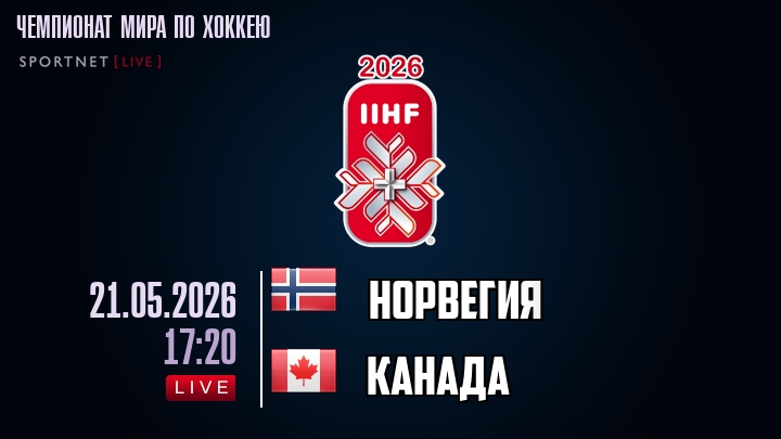 21 мая 2026 года, мы предлагаем посмотреть онлайн трансляцию хоккейного матча между сборной Норвегии и сборной Канады, проходящего в рамках Чемпионата мира по хоккею.