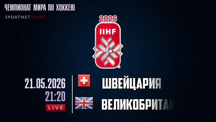 21 мая 2026 года, мы предлагаем посмотреть онлайн трансляцию хоккейного матча между сборной Швейцарии и сборной Великобритании, проходящего в рамках Чемпионата мира по хоккею.