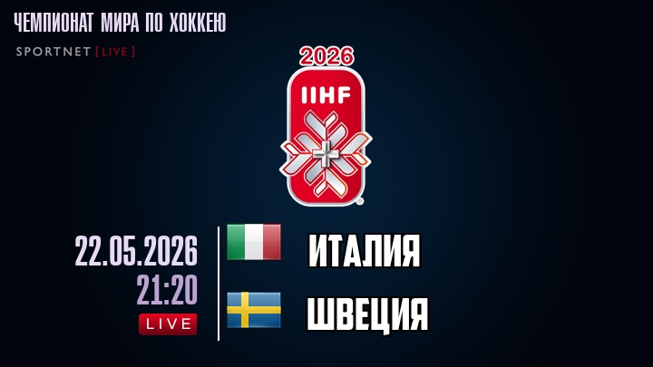 22 мая 2026 года, мы предлагаем посмотреть онлайн трансляцию хоккейного матча между сборной Италии и сборной Швеции, проходящего в рамках Чемпионата мира по хоккею.