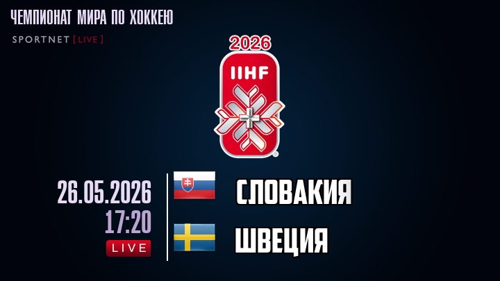 26 мая 2026 года, мы предлагаем посмотреть онлайн трансляцию хоккейного матча между сборной Словакии и сборной Швеции, проходящего в рамках Чемпионата мира по хоккею.