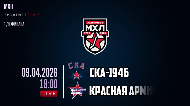 Сегодня, 9 апреля 2026 года, мы предлагаем посмотреть онлайн трансляцию хоккейного матча между хоккейным клубом СКА- и хоккейным клубом Красная Армия, проходящего в рамках Серии 1/8 финала ПЛЕЙ-ОФФ чемпионата МХЛ.