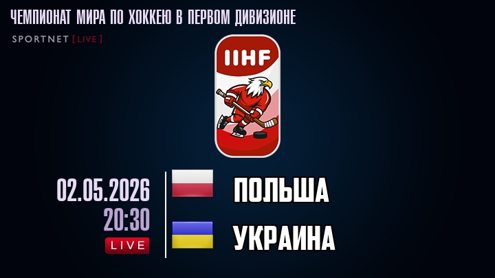 2 мая 2026 года, мы предлагаем посмотреть онлайн трансляцию хоккейного матча между сборной Польши и сборной Украины, проходящего в рамках Чемпионата мира по хоккею в Первом дивизионе.