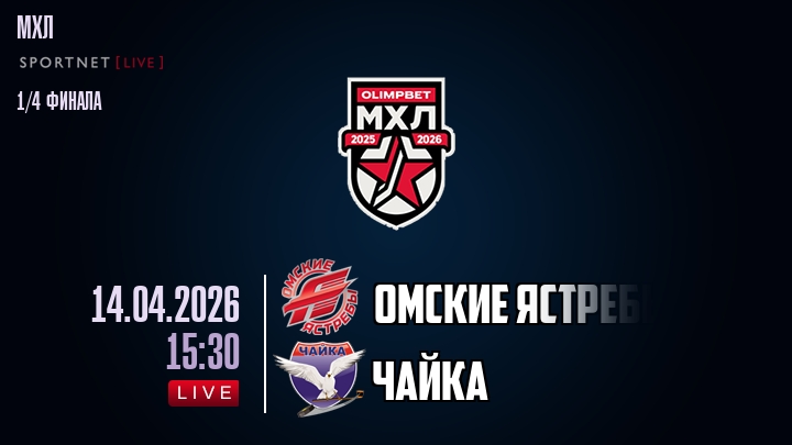 14 апреля 2026 года, мы предлагаем посмотреть онлайн трансляцию хоккейного матча между хоккейным клубом Омские Ястребы и хоккейным клубом Чайка, проходящего в рамках чемпионата МХЛ.