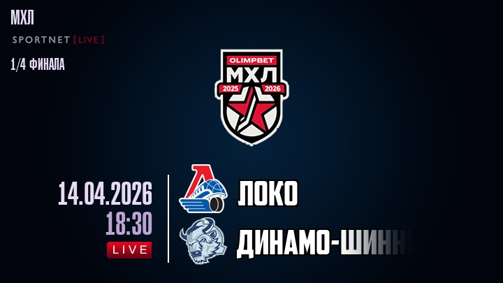 14 апреля 2026 года, мы предлагаем посмотреть онлайн трансляцию хоккейного матча между хоккейным клубом Локо и хоккейным клубом Динамо-Шинник, проходящего в рамках чемпионата МХЛ.