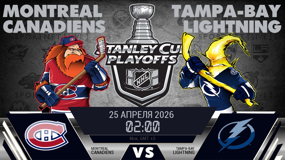 25 апреля 2026 года, мы предлагаем посмотреть онлайн трансляцию хоккейного матча между хоккейным клубом Монреаль Канадиенс и хоккейным клубом Тампа-Бэй Лайтнинг, проходящего в рамках Серии 1/8 финала ПЛЕЙ-ОФФ чемпионата NHL.
