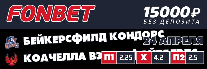 Узнать прогноз на матч Бейкерсфилд Кондорс — Коачелла Вэлли Файрбердс, 24 апреля 2026
