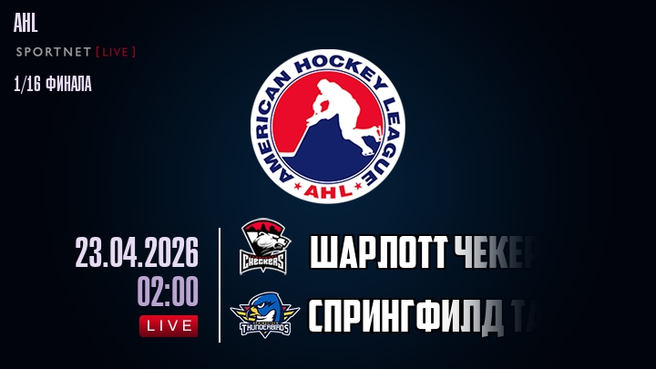 23 апреля 2026 года, мы предлагаем посмотреть онлайн трансляцию хоккейного матча между хоккейным клубом Шарлотт Чекерс и хоккейным клубом Спрингфилд Тандербердс, проходящего в рамках чемпионата AHL.
