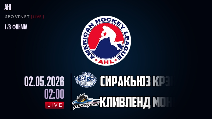 2 мая 2026 года, мы предлагаем посмотреть онлайн трансляцию хоккейного матча между хоккейным клубом Сиракьюз Крэнч и хоккейным клубом Кливленд Монстерс, проходящего в рамках Серии 1/8 финала ПЛЕЙ-ОФФ чемпионата AHL.