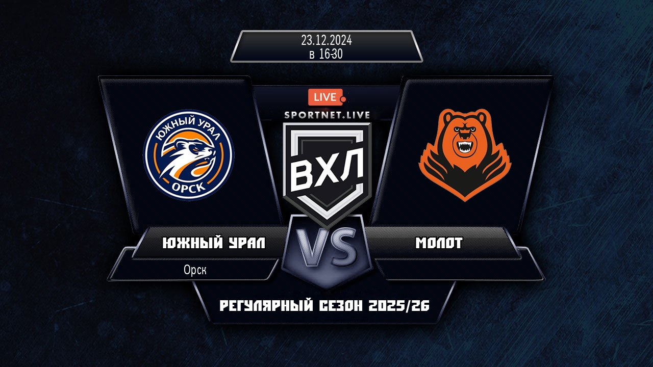 23 декабря 2024 года, состоялся хоккейный матч между командой Южный Урал и командой Молот, который проходил в рамках чемпионата ВХЛ.