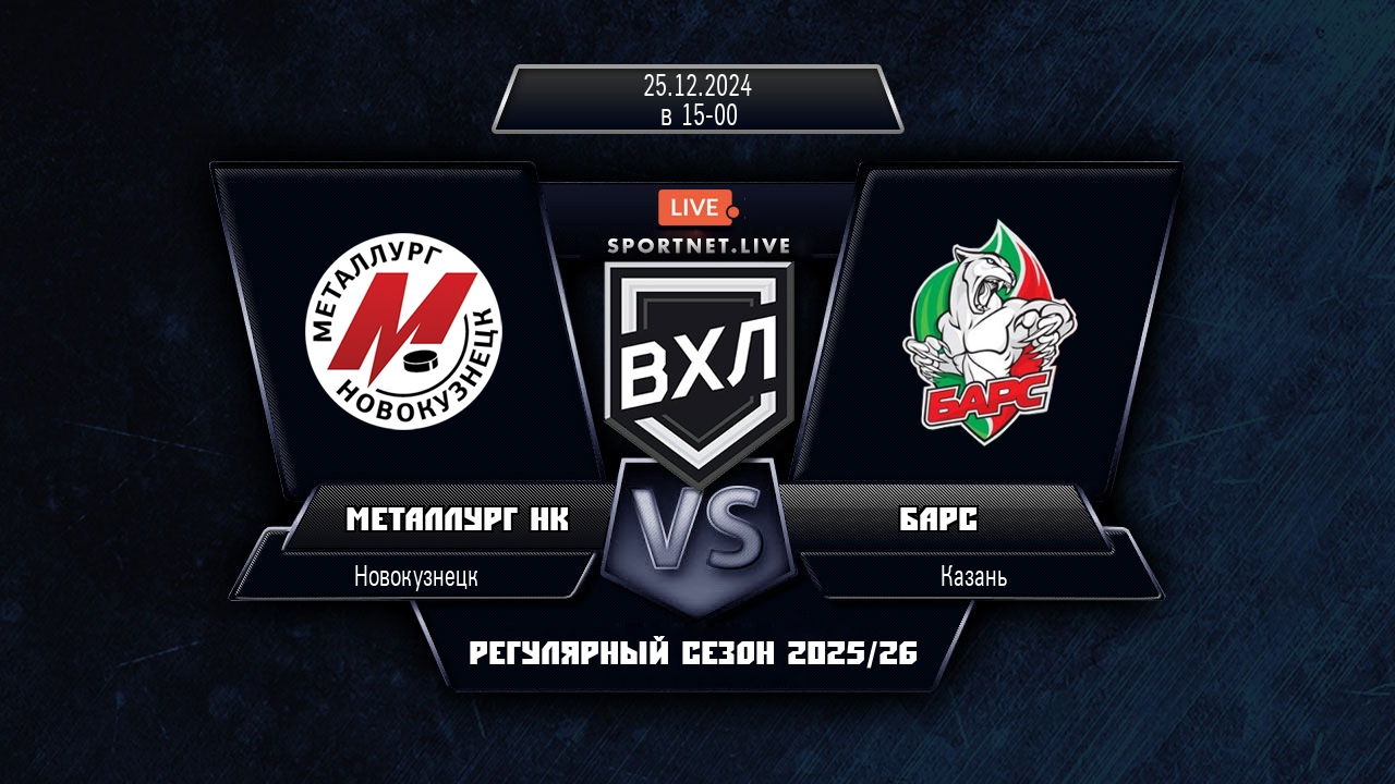 25 декабря 2024 года, состоялся хоккейный матч между командой Металлург Нк и командой Барс, который проходил в рамках чемпионата ВХЛ.