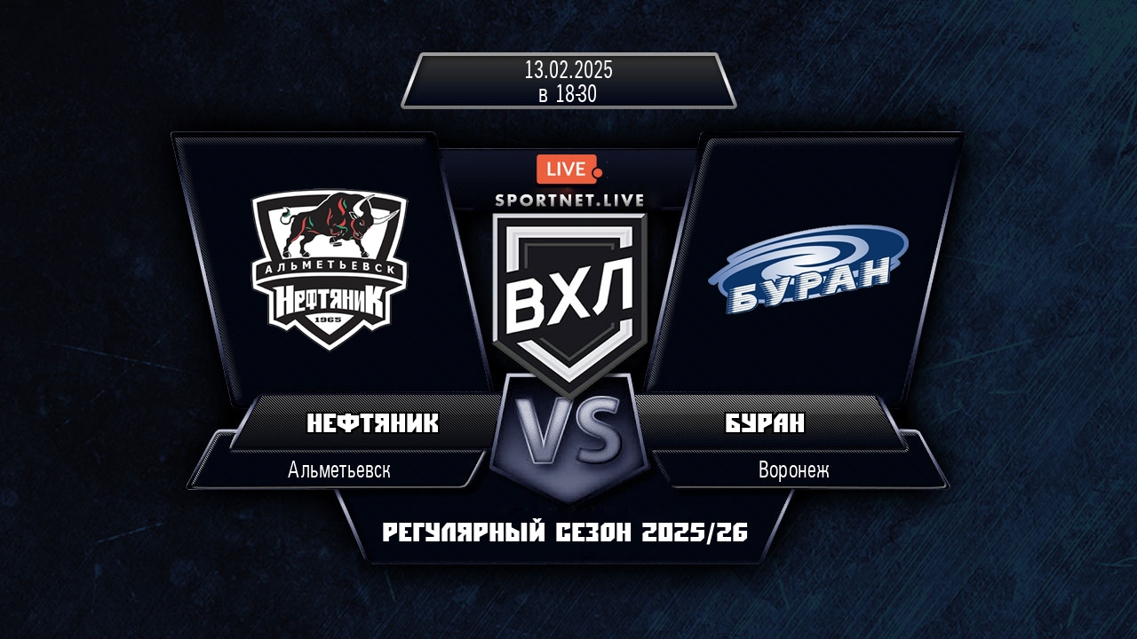 13 февраля 2025 года, состоялся хоккейный матч между командой Нефтяник и командой Буран, который проходил в рамках чемпионата ВХЛ.