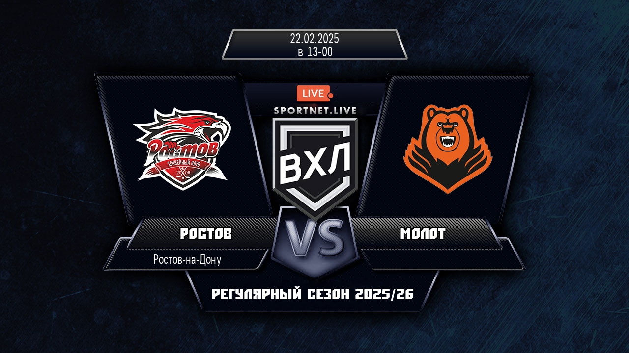 22 февраля 2025 года, состоялся хоккейный матч между командой Ростов и командой Молот, который проходил в рамках чемпионата ВХЛ.