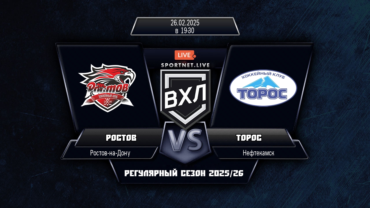 26 февраля 2025 года, состоялся хоккейный матч между командой Ростов и командой Торос, который проходил в рамках чемпионата ВХЛ.