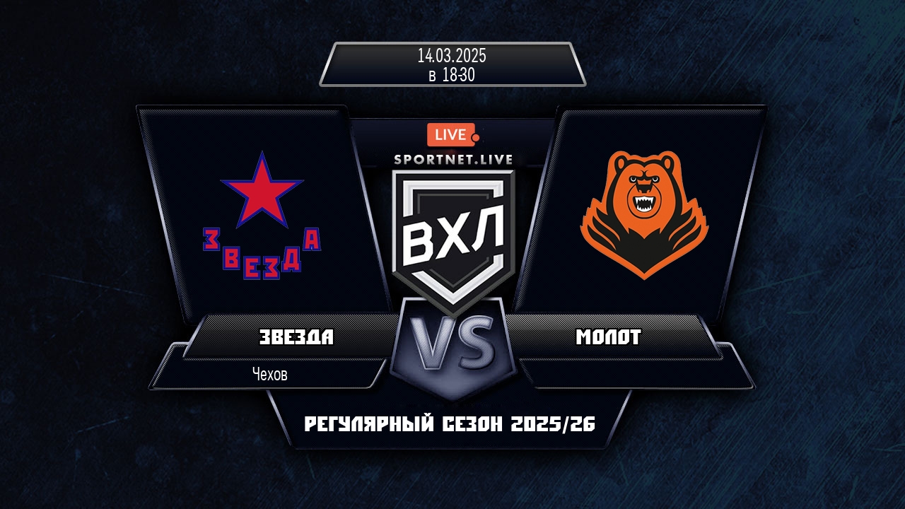 14 марта 2025 года, состоялся хоккейный матч между командой Звезда и командой Молот, который проходил в рамках чемпионата ВХЛ.