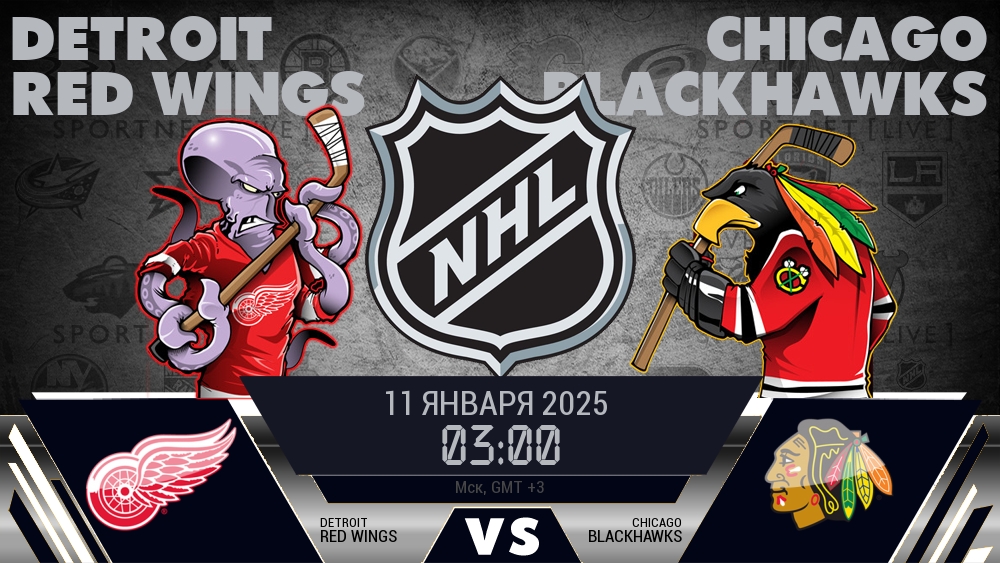 11 января 2025 года, состоялся хоккейный матч между командой Детройт Ред Уингз и командой Чикаго Блэкхокс, который проходил в рамках чемпионата NHL.