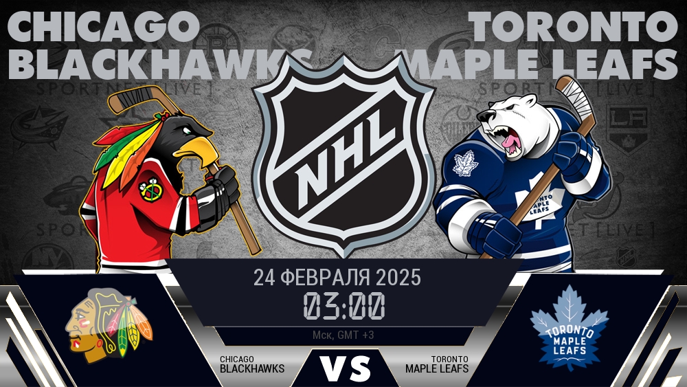 24 февраля 2025 года, состоялся хоккейный матч между командой Чикаго Блэкхокс и командой Торонто Мэйпл Ливз, который проходил в рамках чемпионата NHL.
