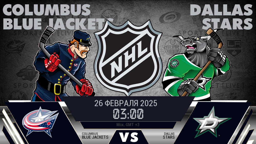 26 февраля 2025 года, состоялся хоккейный матч между командой Коламбус Блю Джэкетс и командой Даллас Старз, который проходил в рамках чемпионата NHL.