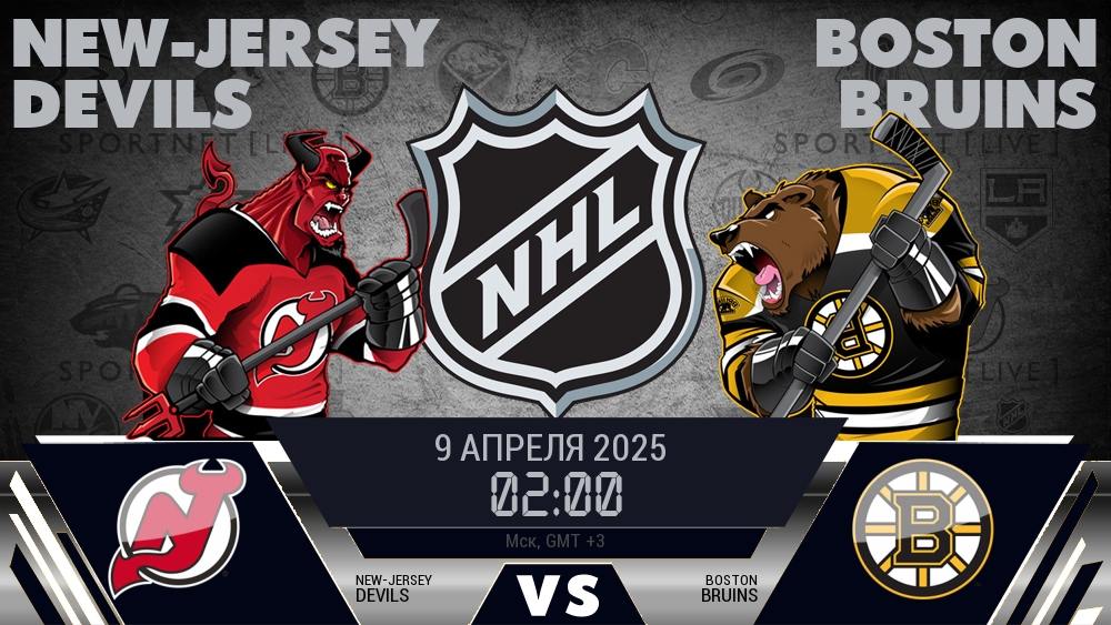 9 апреля 2025 года, состоялся хоккейный матч между командой Нью-Джерси Дэвилз и командой Бостон Брюинз, который проходил в рамках чемпионата NHL.