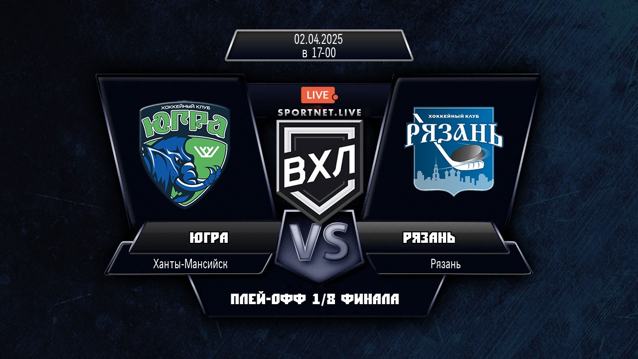 2 апреля 2025 года, состоялся хоккейный матч между командой Югра и командой Рязань, который проходил в рамках чемпионата ВХЛ (1/8 финала).