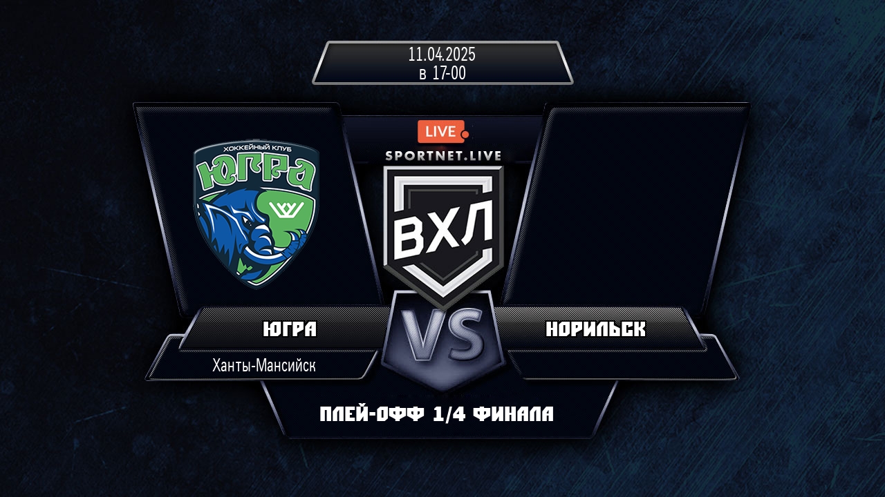11 апреля 2025 года, состоялся хоккейный матч между командой Югра и командой Норильск, который проходил в рамках чемпионата ВХЛ (1/4 финала).
