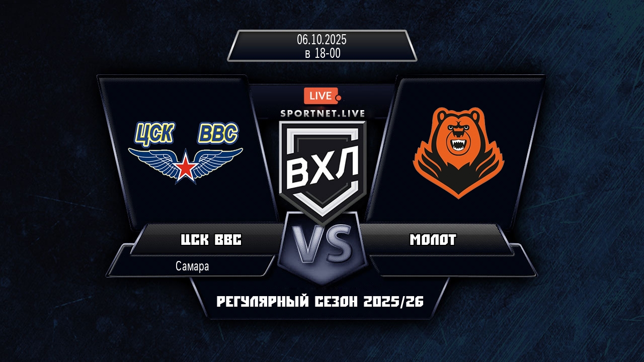 6 октября 2025 года, состоялся хоккейный матч между командой ЦСК ВВС и командой Молот, который проходил в рамках чемпионата ВХЛ.