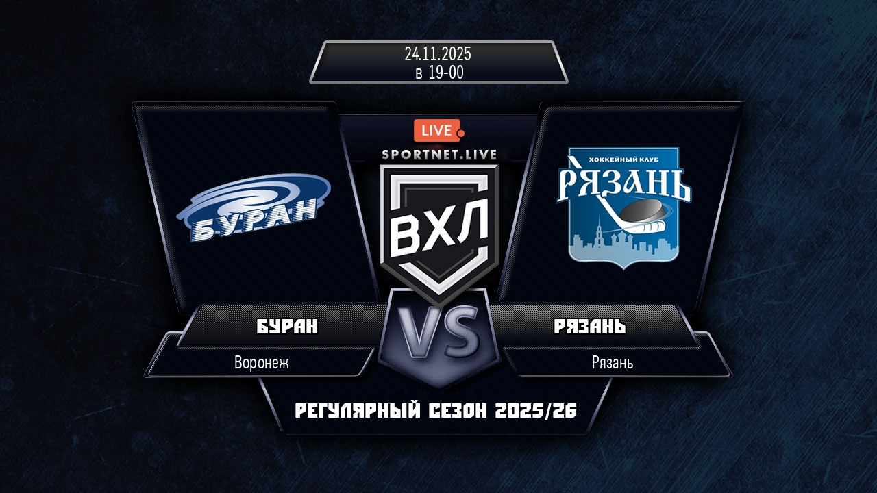 24 ноября 2025 года, состоялся хоккейный матч между командой Буран и командой Рязань, который проходил в рамках чемпионата ВХЛ.