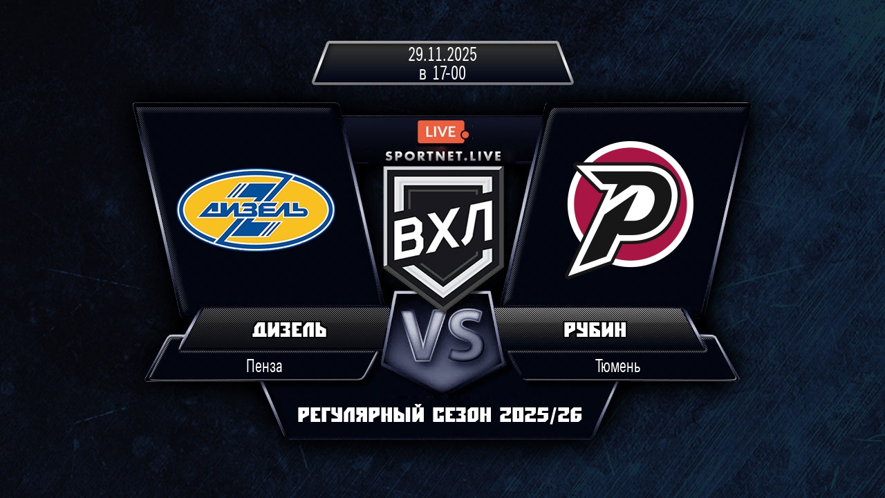 29 ноября 2025 года, состоялся хоккейный матч между командой Дизель и командой Рубин, который проходил в рамках чемпионата ВХЛ.