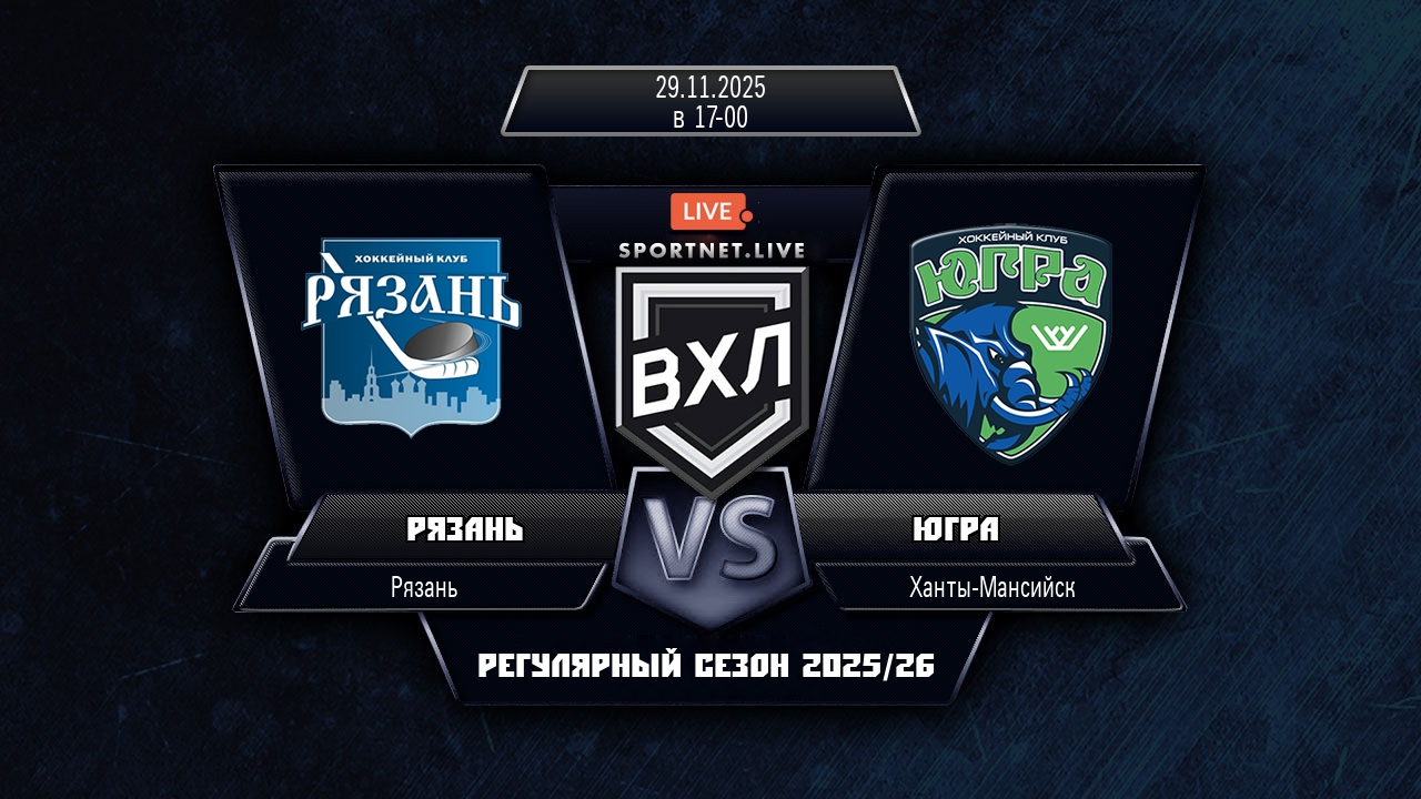 29 ноября 2025 года, состоялся хоккейный матч между командой Рязань и командой Югра, который проходил в рамках чемпионата ВХЛ.