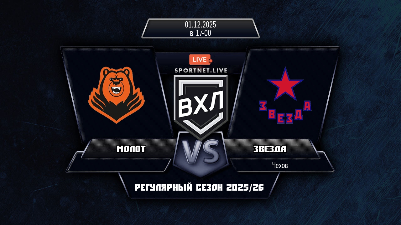 1 декабря 2025 года, состоялся хоккейный матч между командой Молот и командой Звезда, который проходил в рамках чемпионата ВХЛ.