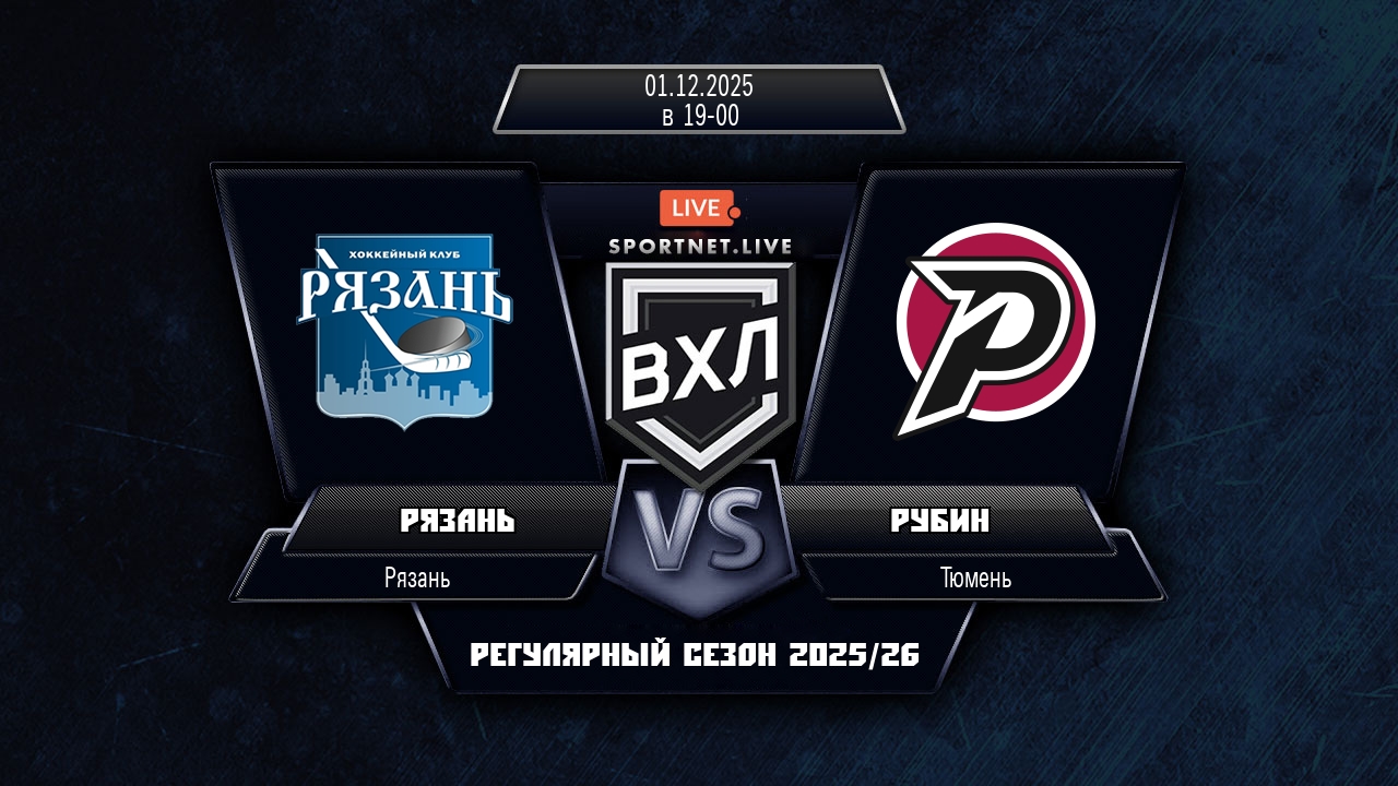 1 декабря 2025 года, состоялся хоккейный матч между командой Рязань и командой Рубин, который проходил в рамках чемпионата ВХЛ.