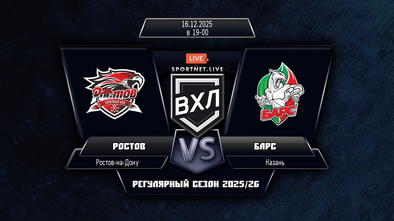 16 декабря 2025 года, состоялся хоккейный матч между командой Ростов и командой Барс, который проходил в рамках чемпионата ВХЛ.