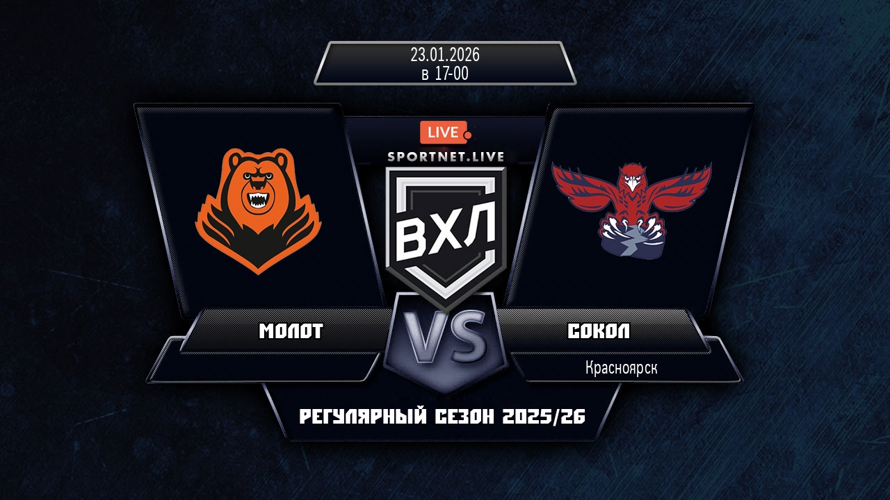 23 января 2026 года, состоялся хоккейный матч между командой Молот и командой Сокол, который проходил в рамках чемпионата ВХЛ.