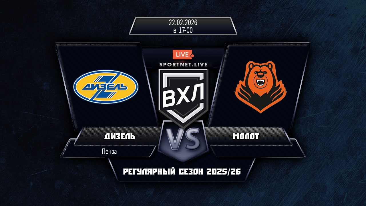 22 февраля 2026 года, состоялся хоккейный матч между командой Дизель и командой Молот, который проходил в рамках чемпионата ВХЛ.
