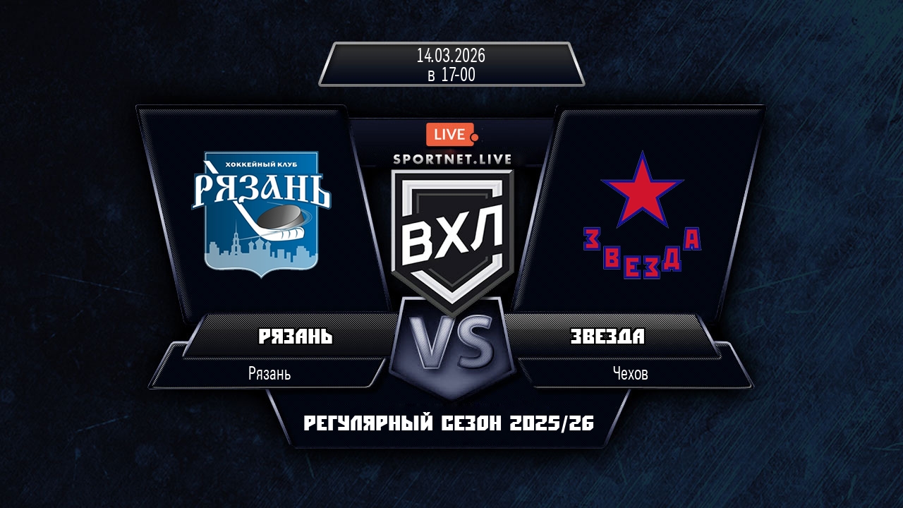 14 марта 2026 года, состоялся хоккейный матч между командой Рязань и командой Звезда, который проходил в рамках чемпионата ВХЛ.