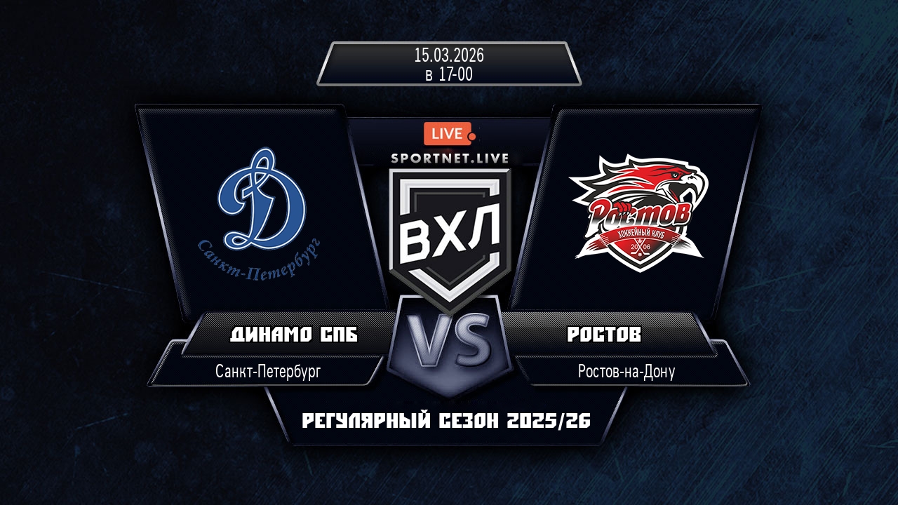 Сегодня, 15 марта 2026 года, состоялся хоккейный матч между командой Динамо Спб и командой Ростов, который проходил в рамках чемпионата ВХЛ.