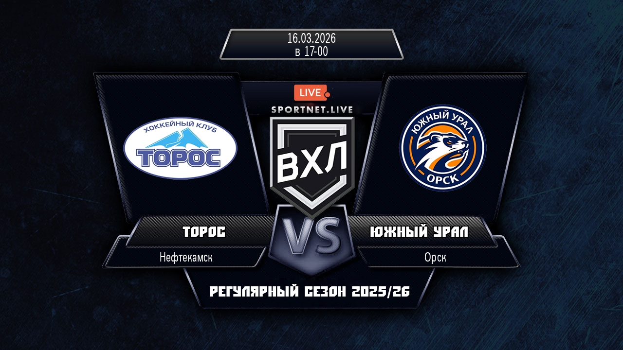 16 марта 2026 года, состоялся хоккейный матч между командой Торос и командой Южный Урал, который проходил в рамках чемпионата ВХЛ.
