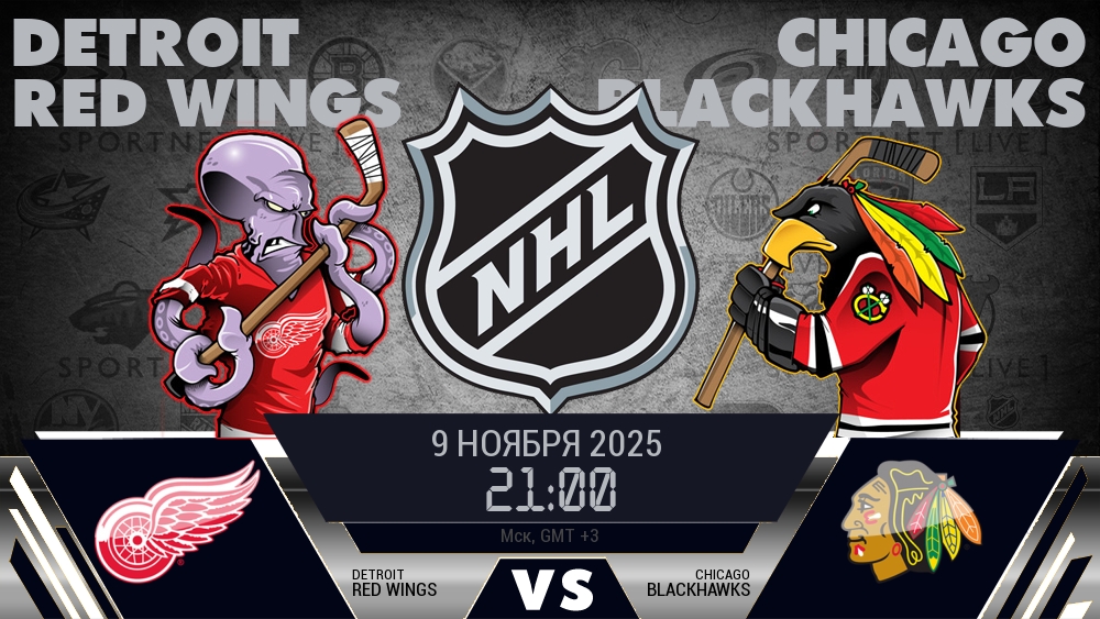 9 ноября 2025 года, состоялся хоккейный матч между командой Детройт Ред Уингз и командой Чикаго Блэкхокс, который проходил в рамках чемпионата NHL.
