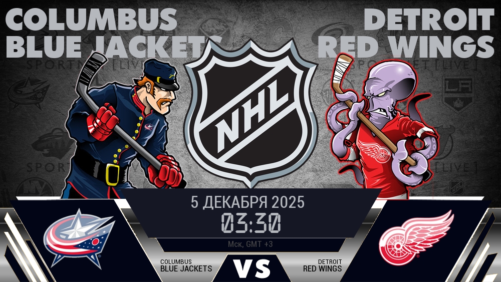 Сегодня, 5 декабря 2025 года, состоялся хоккейный матч между командой Коламбус Блю Джэкетс и командой Детройт Ред Уингз, который проходил в рамках чемпионата NHL.