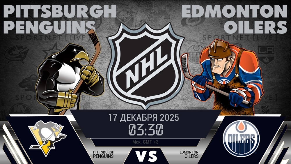Сегодня, 17 декабря 2025 года, состоялся хоккейный матч между командой Питтсбург Пингвинз и командой Эдмонтон Ойлерз, который проходил в рамках чемпионата NHL.
