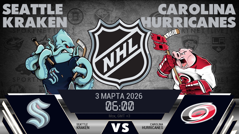 Сегодня, 3 марта 2026 года, состоялся хоккейный матч между командой Сиэтл Кракен и командой Каролина Харрикейнз, который проходил в рамках чемпионата NHL.