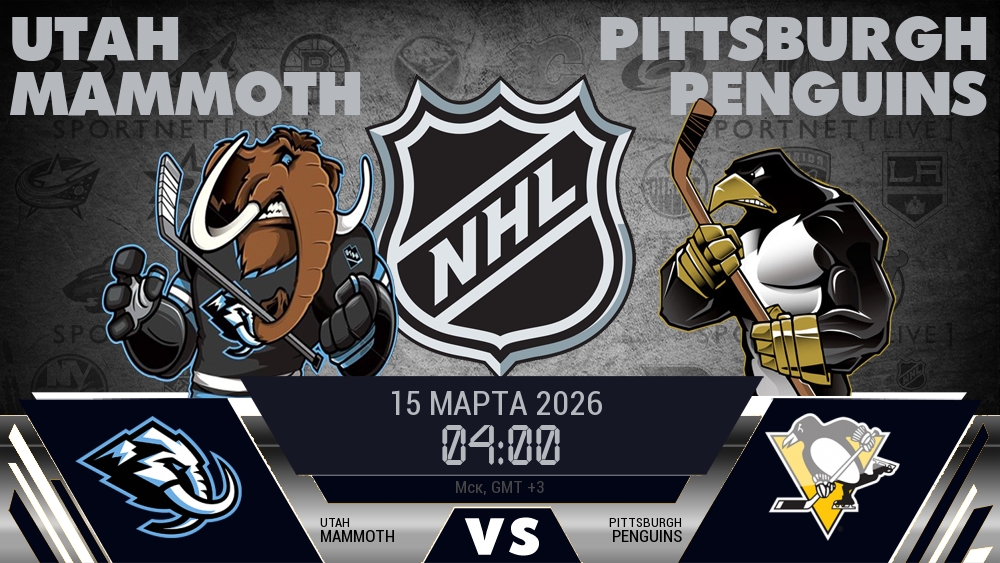 Сегодня, 15 марта 2026 года, состоялся хоккейный матч между командой Юта Маммот и командой Питтсбург Пингвинз, который проходил в рамках чемпионата NHL.