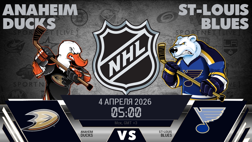 Сегодня, 4 апреля 2026 года, состоялся хоккейный матч между командой Анахайм Дакс и командой Сент-Луис Блюз, который проходил в рамках чемпионата NHL.