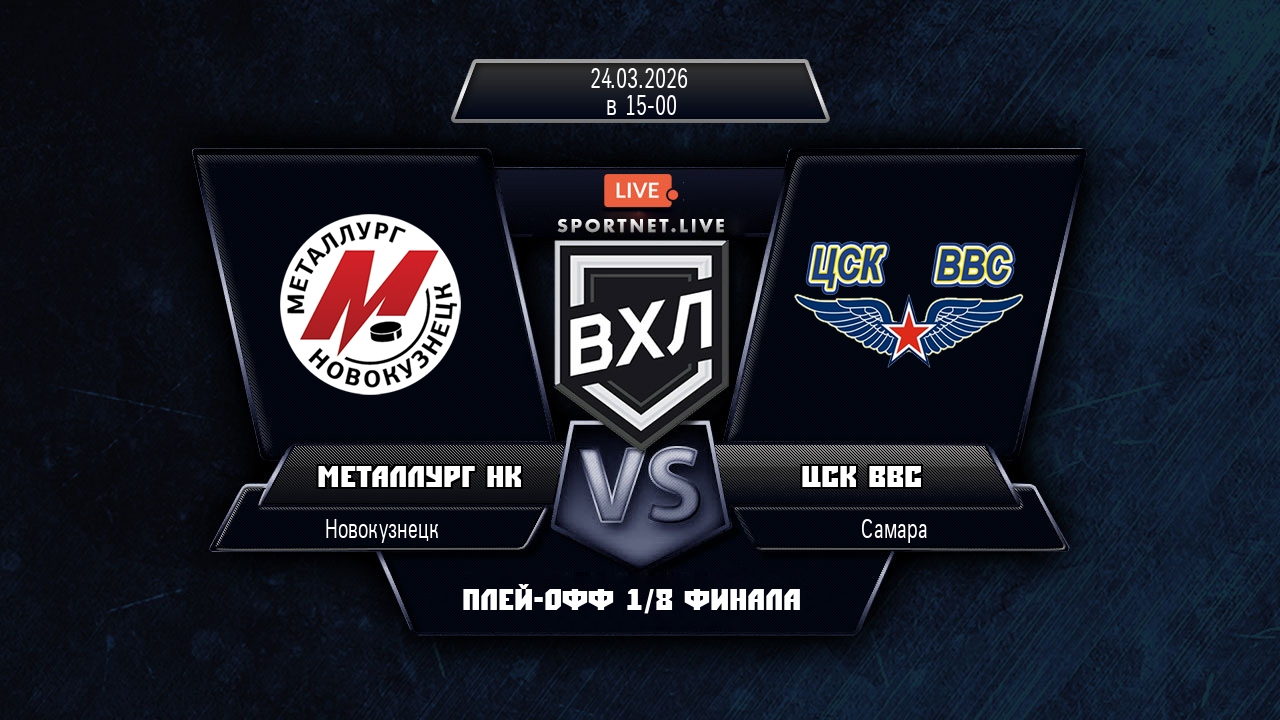 Сегодня, 24 марта 2026 года, состоялся хоккейный матч между командой Металлург Нк и командой ЦСК ВВС, который проходил в рамках чемпионата ВХЛ (1/8 финала).