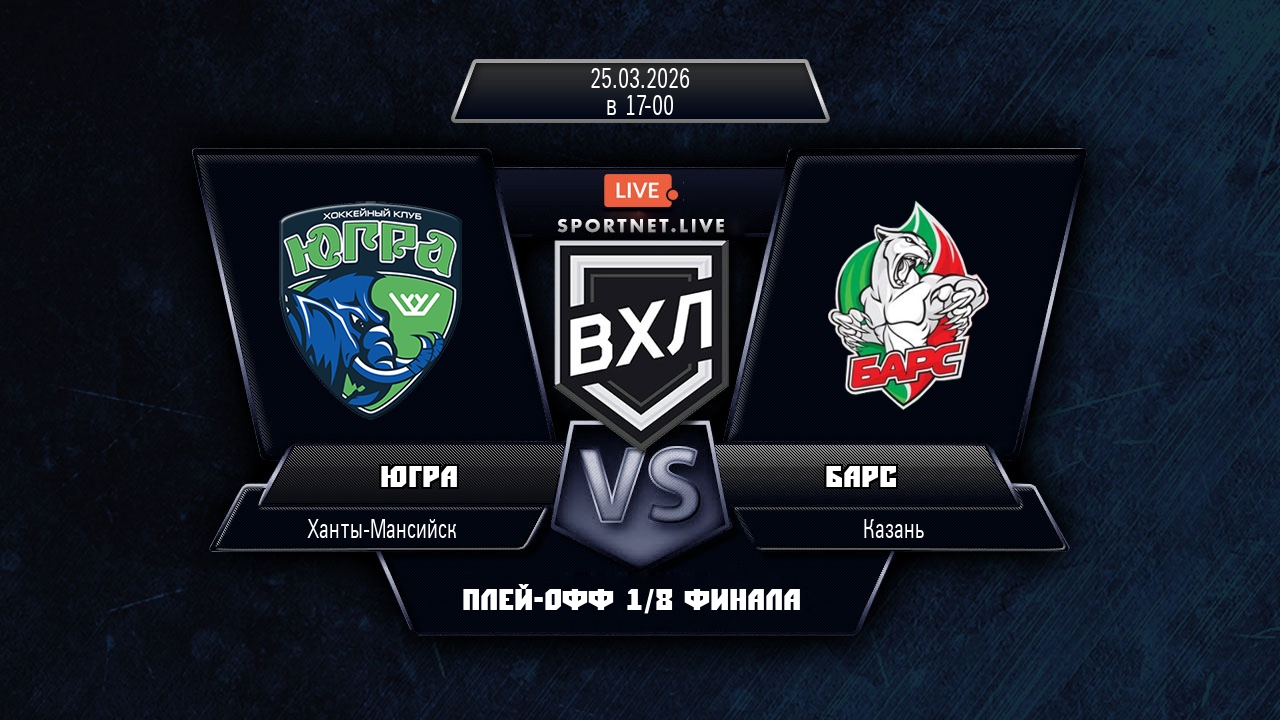 25 марта 2026 года, состоялся хоккейный матч между командой Югра и командой Барс, который проходил в рамках чемпионата ВХЛ (1/8 финала).