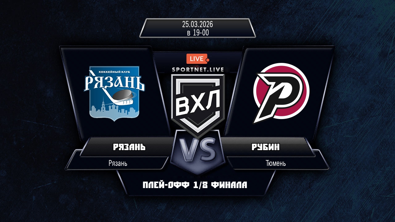 25 марта 2026 года, состоялся хоккейный матч между командой Рязань и командой Рубин, который проходил в рамках чемпионата ВХЛ (1/8 финала).
